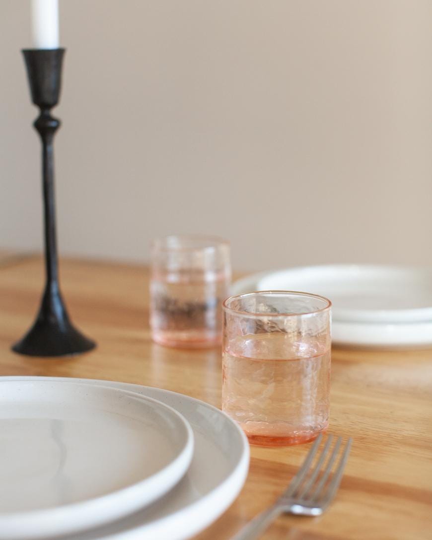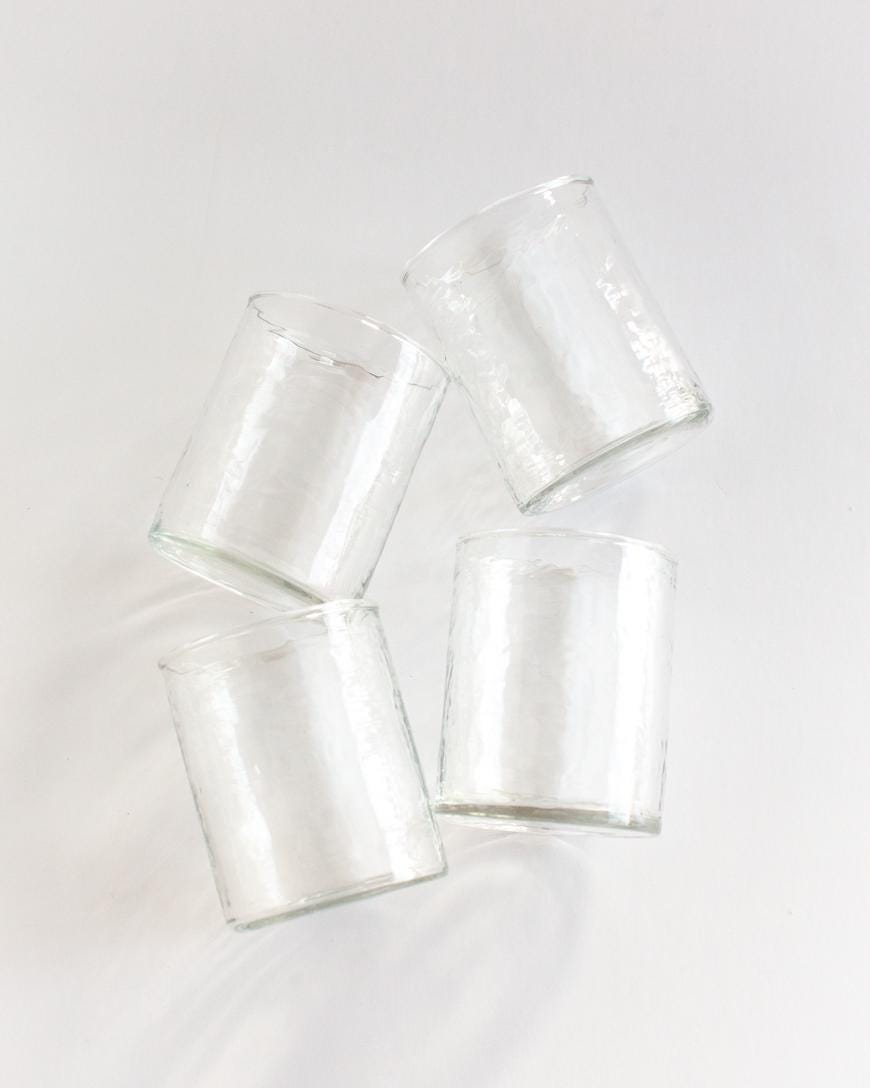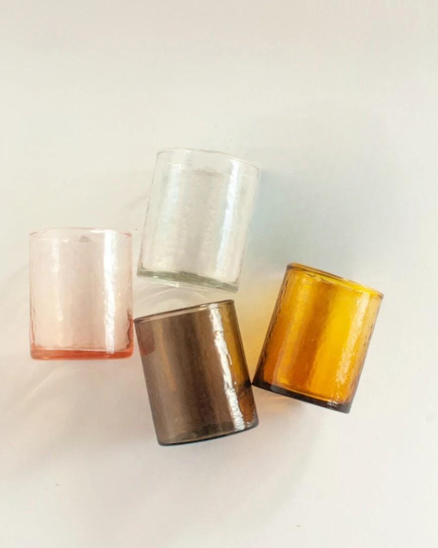 Designed to match our carafe + cup set, these dainty glasses are meant for adding to the collection or perfect all on their own. Handblown with a stunning hammered finish, each has a weight and texture that is distinctly beautiful. Crafted with care at a woman-owned business, each is ethically made from 100% recycled glass.
