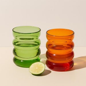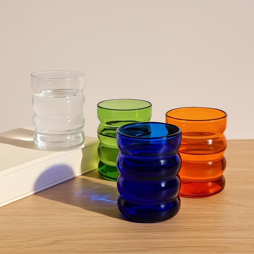 Available in gorgeous shades like amber, blue, green, pink and clear, these cups brighten up any space. You can mix and match to create your own set — perfect for a cozy, minimalist, or colorful setup.